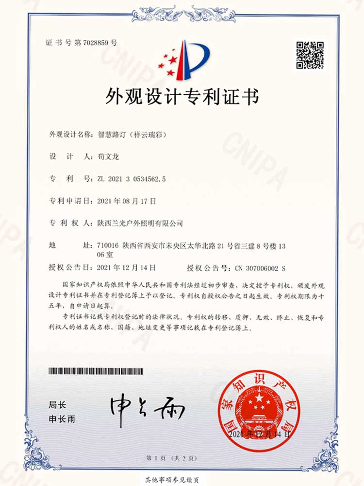 陜西祥云瑞彩智慧路燈